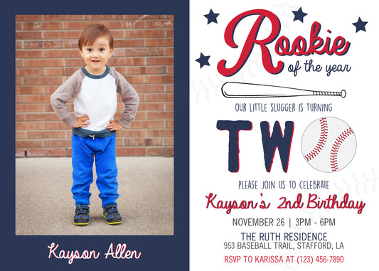 BASEBALL Rookie of the Year Birthday Digital or Printed Invitation with or without Photo!