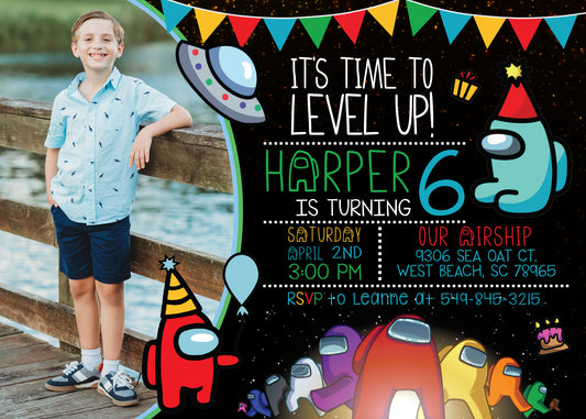 AMONG US Theme Birthday Party Invitation with or without Photo - Printed or Digital File!