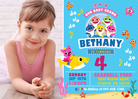 BABY SHARK Digital or Printed Birthday Party Invitation with or without Photo!
