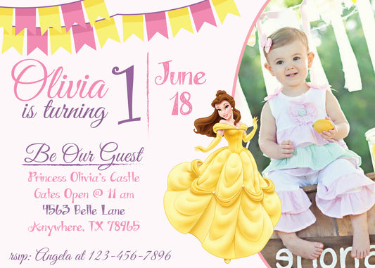 BELLE Beauty and the Beast Printed or Digital Birthday Party Invitation With Photo!