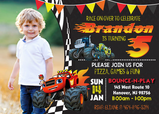 BLAZE and the Monster Machines Birthday Party Invitation with Photo! Printed or Digital!