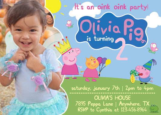 Adorable PEPPA PIG Printed or Digital Birthday Party Invitation! Peppa and Friends!