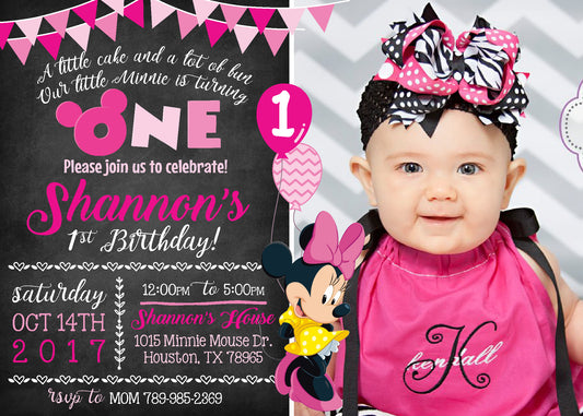 Adorable MINNIE MOUSE Birthday Invitation with Photo! Printed or Digital!