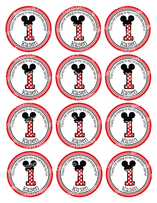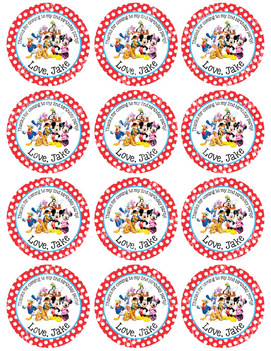 MICKEY MOUSE CLUBHOUSE Custom Red Polka-dot Stickers for Gift Bags, Party Favors! Printed or Digital!