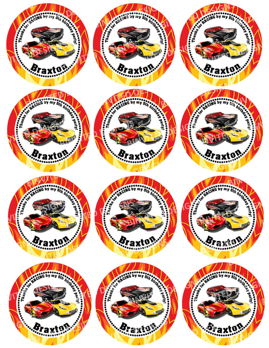 HOT WHEELS Custom Personalized Stickers for Gift Bags, Party Favors! Printed or Digital!