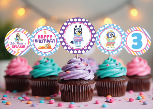 BLUEY Pool Swim Party Cupcake Toppers! 2 Inch or 2.5 Inch! Digital OR Printed & Fully Assembled!