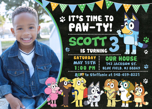 Boy BLUEY Birthday Party Invitation with or without Photo - Printed or Digital File!