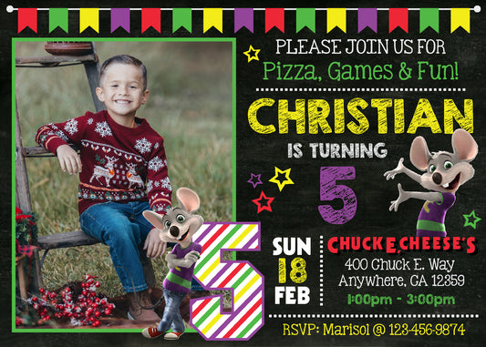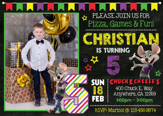 CHUCK E CHEESE Invitation With Photo - Digital or Printed! Choose Your Design!