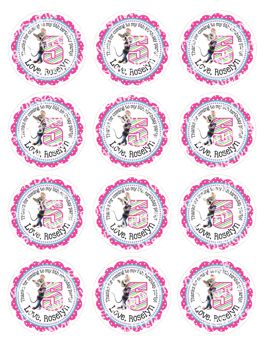 CHUCK E CHEESE Purple, Pink or Blue Custom Stickers for Gift Bags, Party Favors! Printed or Digital!