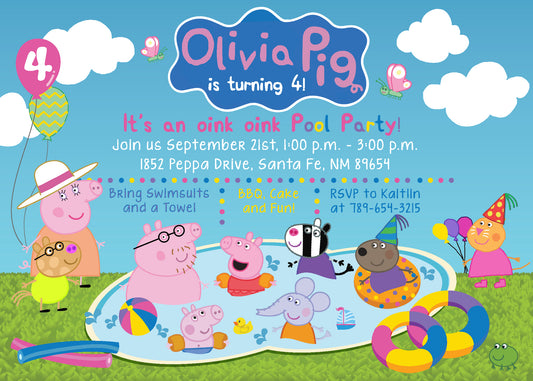 Custom PEPPA PIG & Friends Pool Party Printed OR Digital Pool Bash Birthday Invitation!