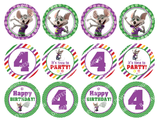 CHUCK E. CHEESE Cupcake Toppers! 2 Inch or 2.5 Inch! Digital OR Printed & Fully Assembled!