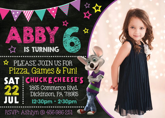 CHUCK E CHEESE Birthday Party Invitation with Photo - Printed or Digital File!