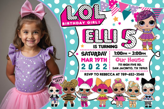 LOL DOLLS Birthday Digital or Printed Invitation with or without Photo!