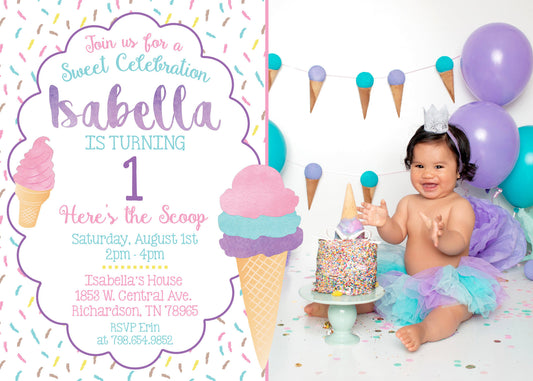 ICE CREAM SOCIAL Birthday Party Invitation with Photo! Two Options! Printed or Digital!