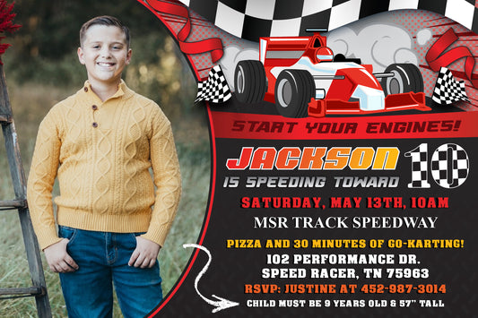 GO KART RACING Birthday Party Invitation with or without Photo - Printed or Digital File!