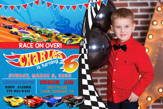 HOT WHEELS Cars Birthday Party Invitation with Photo - Printed or Digital!