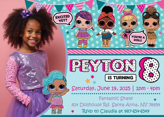 LOL DOLLS Birthday Party Digital or Printed Invitation with or without Photo!