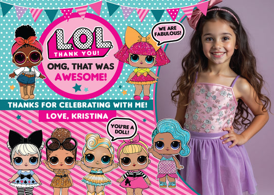 LOL DOLLS Thank You Birthday Card With or Without Photo! Printed or Digital File!