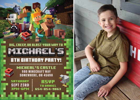 MINECRAFT Birthday Party Invitation with or without Photo - Printed or Digital File!