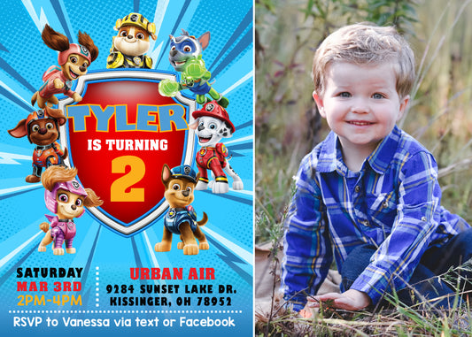 PAW PATROL Blue Mighty Pups Birthday Party Invitation with or without Photo - Printed or Digital File!