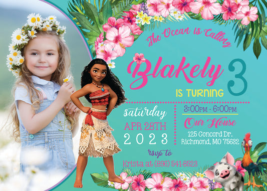 MOANA Digital or Printed Birthday Party Invitation with Photo!
