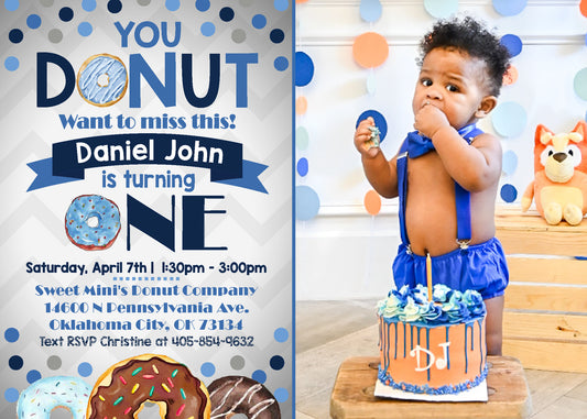 You DONUT Want to Miss this Party Invitation - Boy or Girl - With Photo - Digital or Printed!