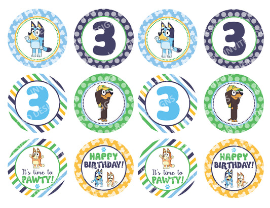 Boy BLUEY Cupcake Toppers! 2 Inch or 2.5 Inch! Digital OR Printed & Fully Assembled!