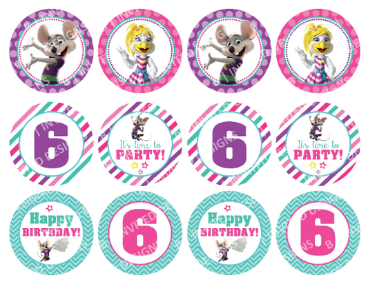 Girl CHUCK E. CHEESE Cupcake Toppers! 2 Inch or 2.5 Inch! Digital OR Printed & Fully Assembled!