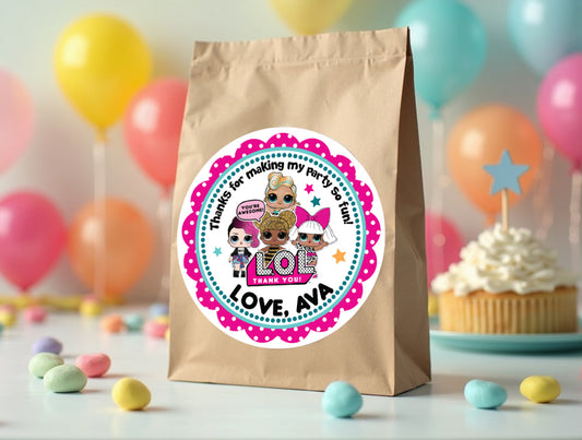 LOL DOLLS Custom Personalized Stickers for Gift Bags, Party Favors! Printed or Digital!