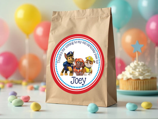 PAW PATROL Custom Stickers for Gift Bags, Party Favors! Printed or Digital! Marshall, Chase, Zuma, Rubble!