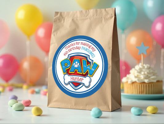PAW PATROL Shield Printed or Digital Custom Birthday Party Stickers for Gift Bags, Party Favors!