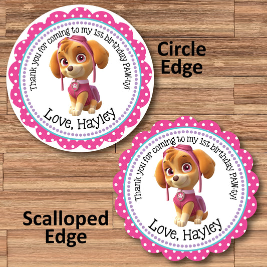 PAW PATROL Girl Personalized Stickers for Gift Bags, Party Favors! Skye, Everest - Printed or Digital!