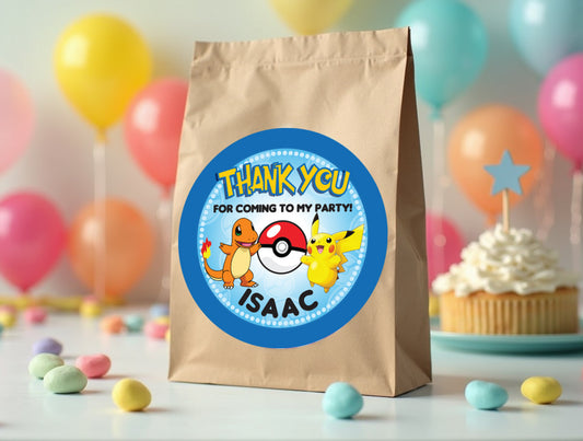 POKEMON Party Digital or Printed Custom Stickers for Gift Bags, Party Favors! Charizard and Pikachu!