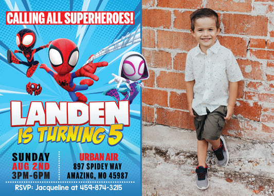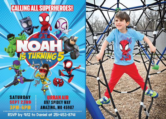 SPIDEY & His AMAZING FRIENDS Digital or Printed Superhero Birthday Invitation - with or without Photo!