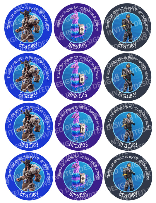 FORTNITE Party Digital or Printed Custom Stickers for Gift Bags, Party Favors!