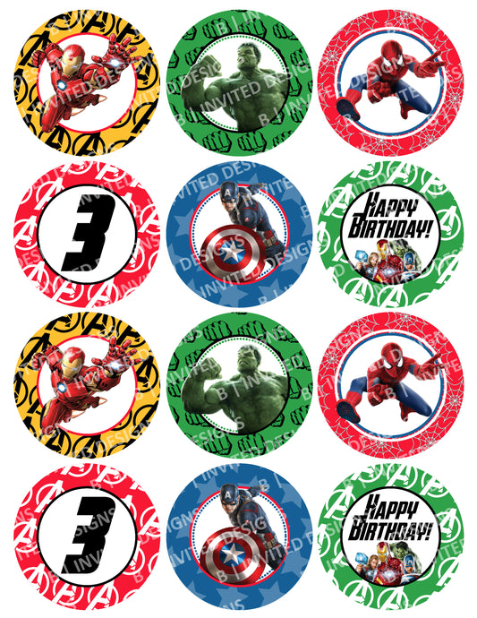 AVENGERS Cupcake Toppers! Hulk, Iron Man, Captain America, Spiderman! 2 Inch or 2.5 Inch! Digital OR Printed & Fully Assembled!