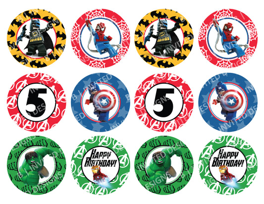 LEGO AVENGERS Cupcake Toppers! Hulk, Iron Man, Captain America, Spiderman! 2 Inch or 2.5 Inch! Digital OR Printed & Fully Assembled!