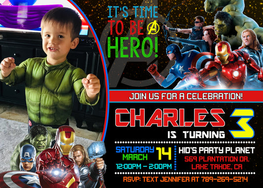 AVENGERS Birthday Party Invitation with Photo - Printed or Digital! Iron Man, Hulk, Captain America!