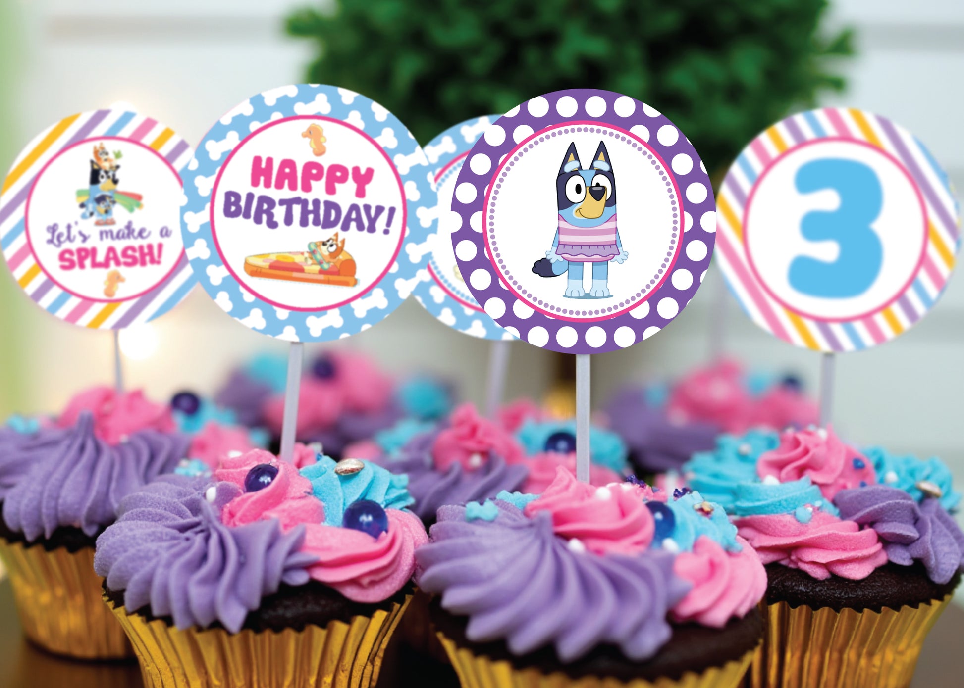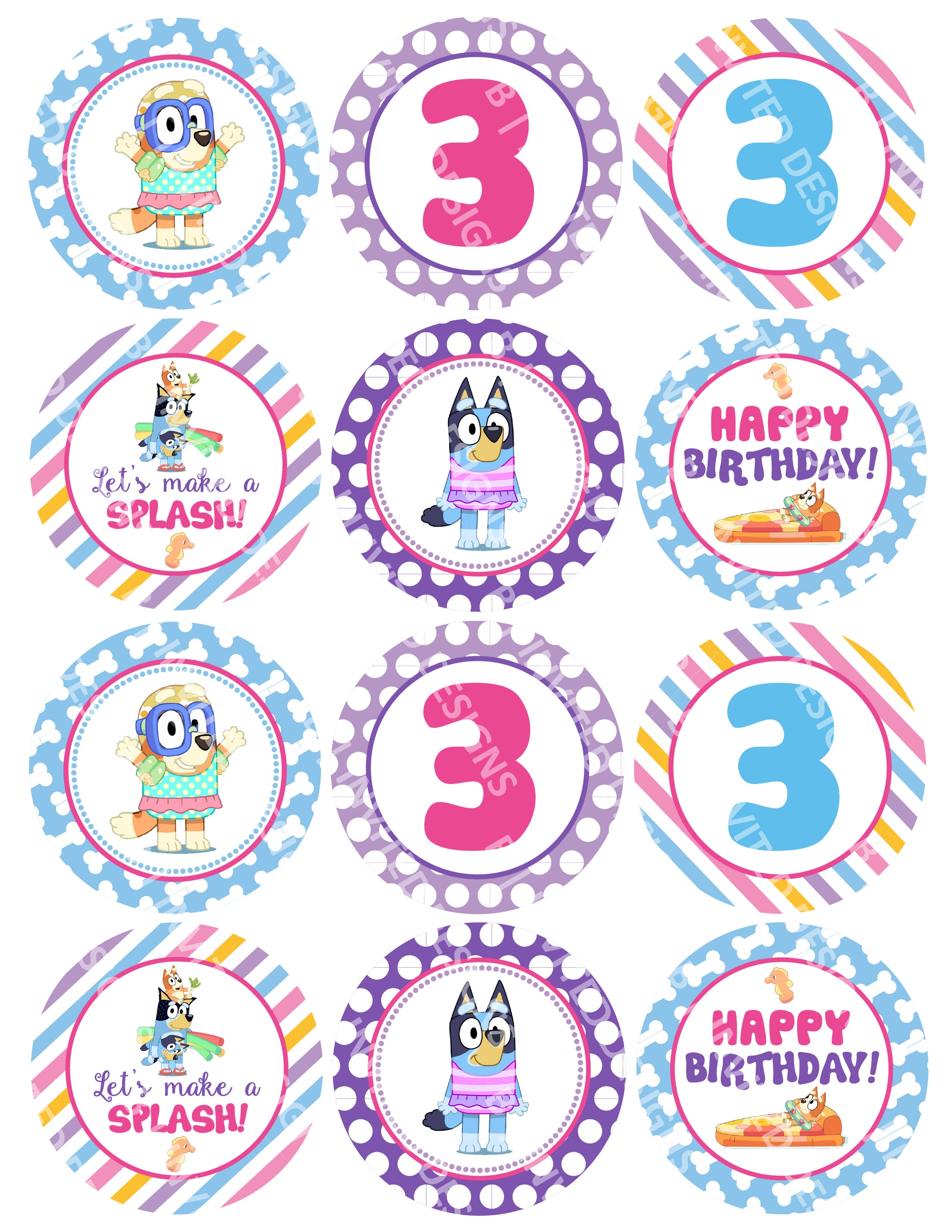 BLUEY Pool Swim Party Cupcake Toppers! 2 Inch or 2.5 Inch! Digital OR Printed & Fully Assembled!