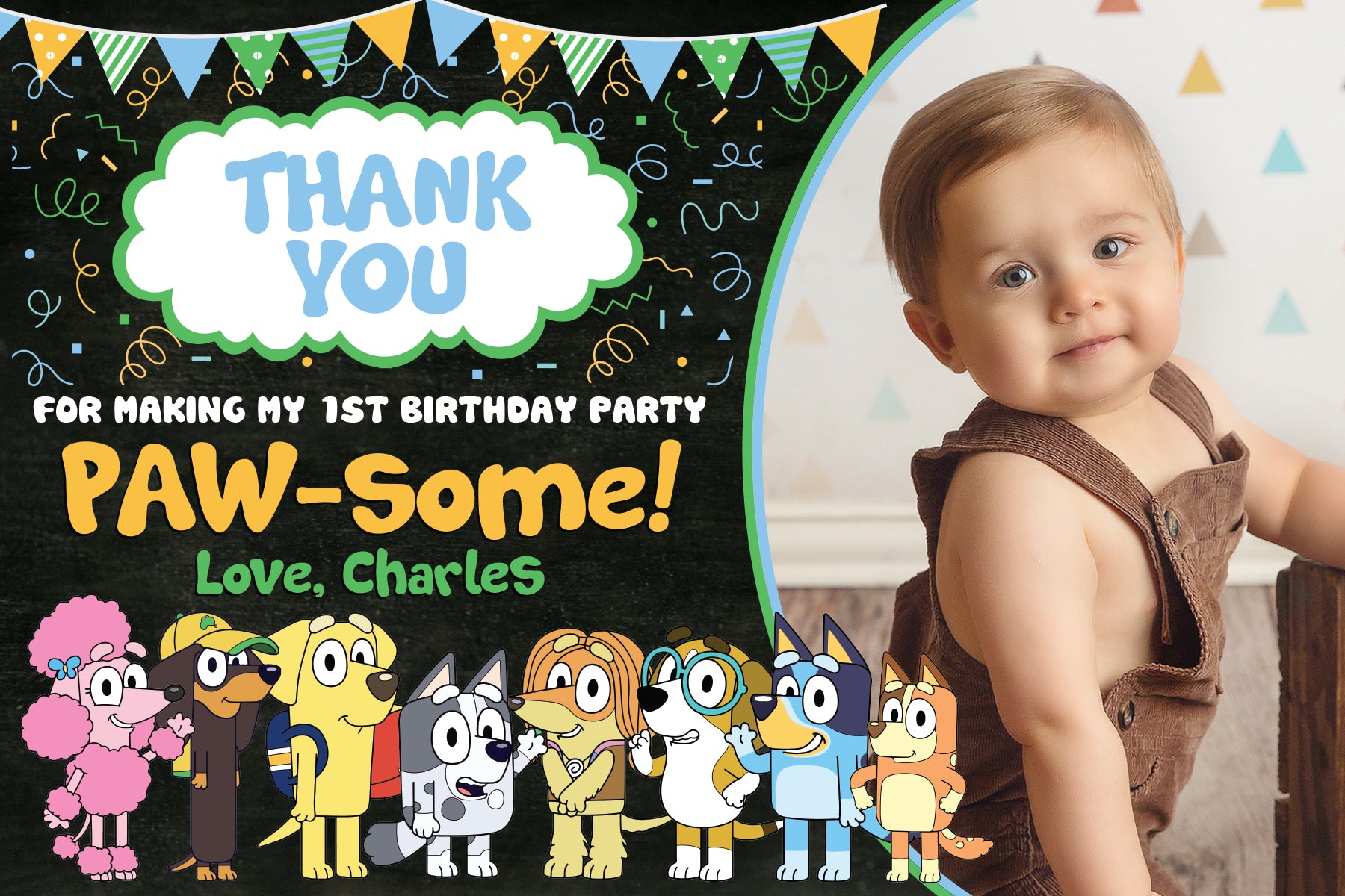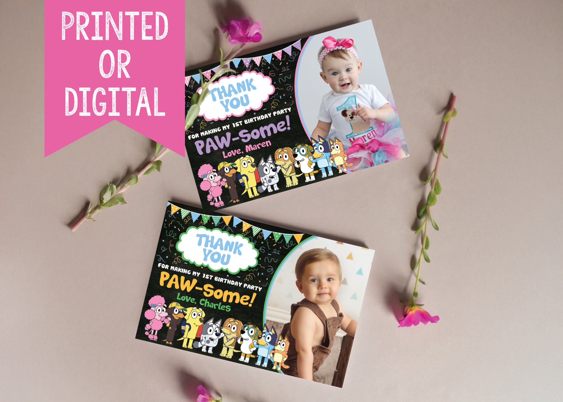 BLUEY Thank You Card - Printed or Digital File! Bluey and Friends!