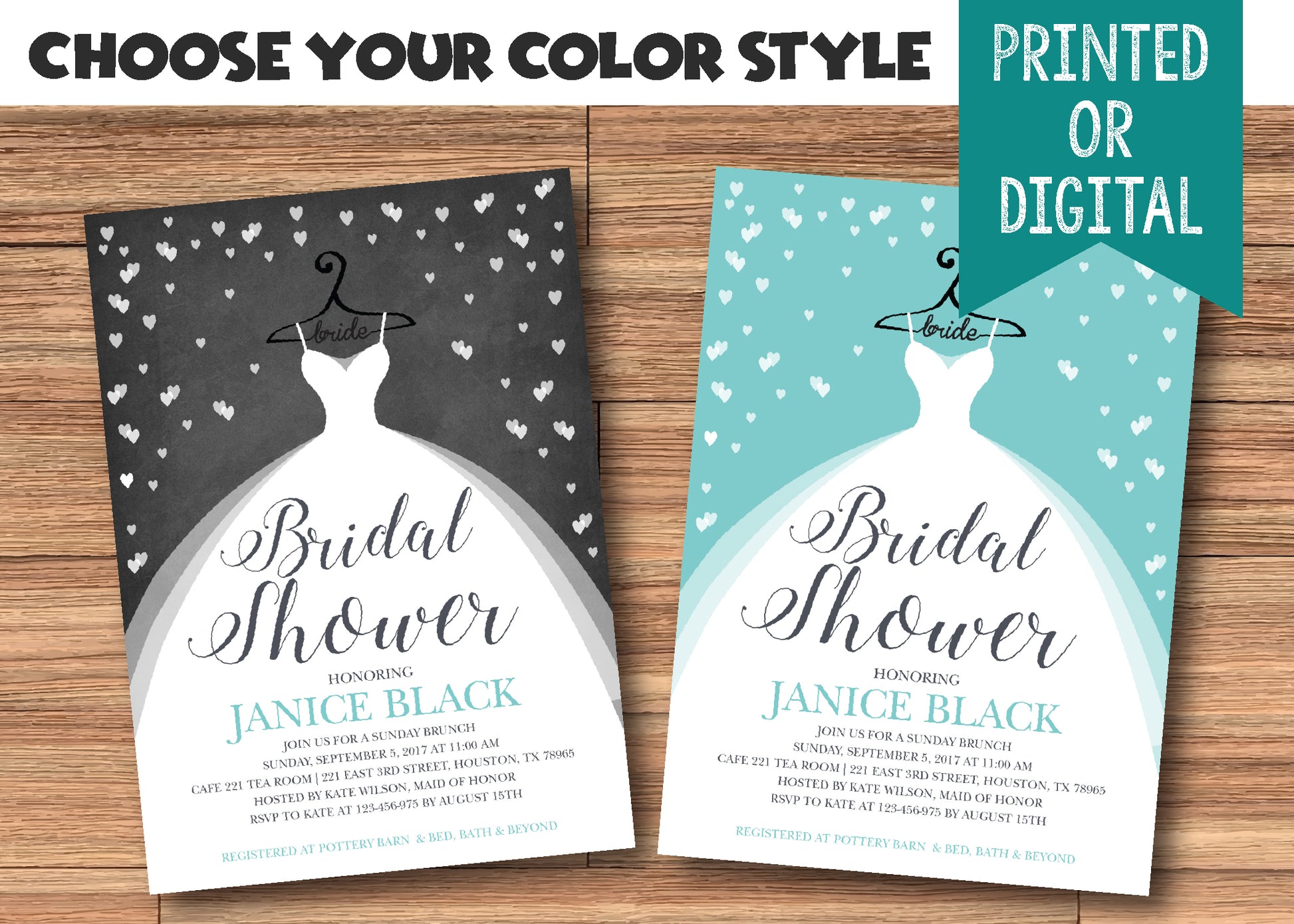 BRIDAL SHOWER Wedding Dress Invitation, Choose Your Background! Printed or Digital!