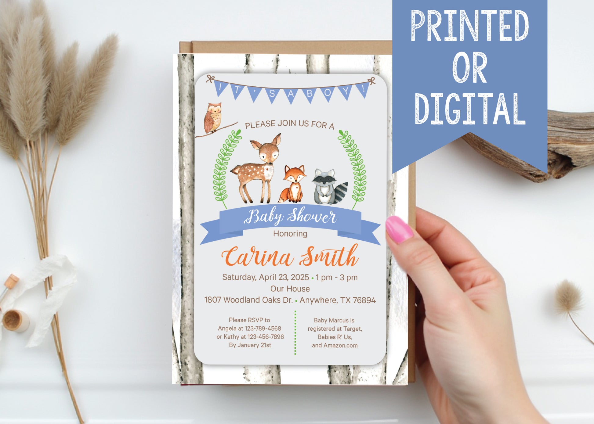 I will personalize your invitation with your information, send you the high-resolution digital JPF file, and then you can print it at home or send it to your local print shop! There are no limits on how many you can print.