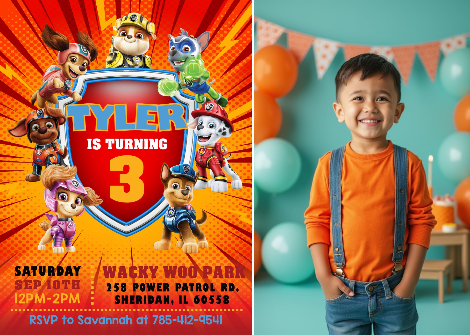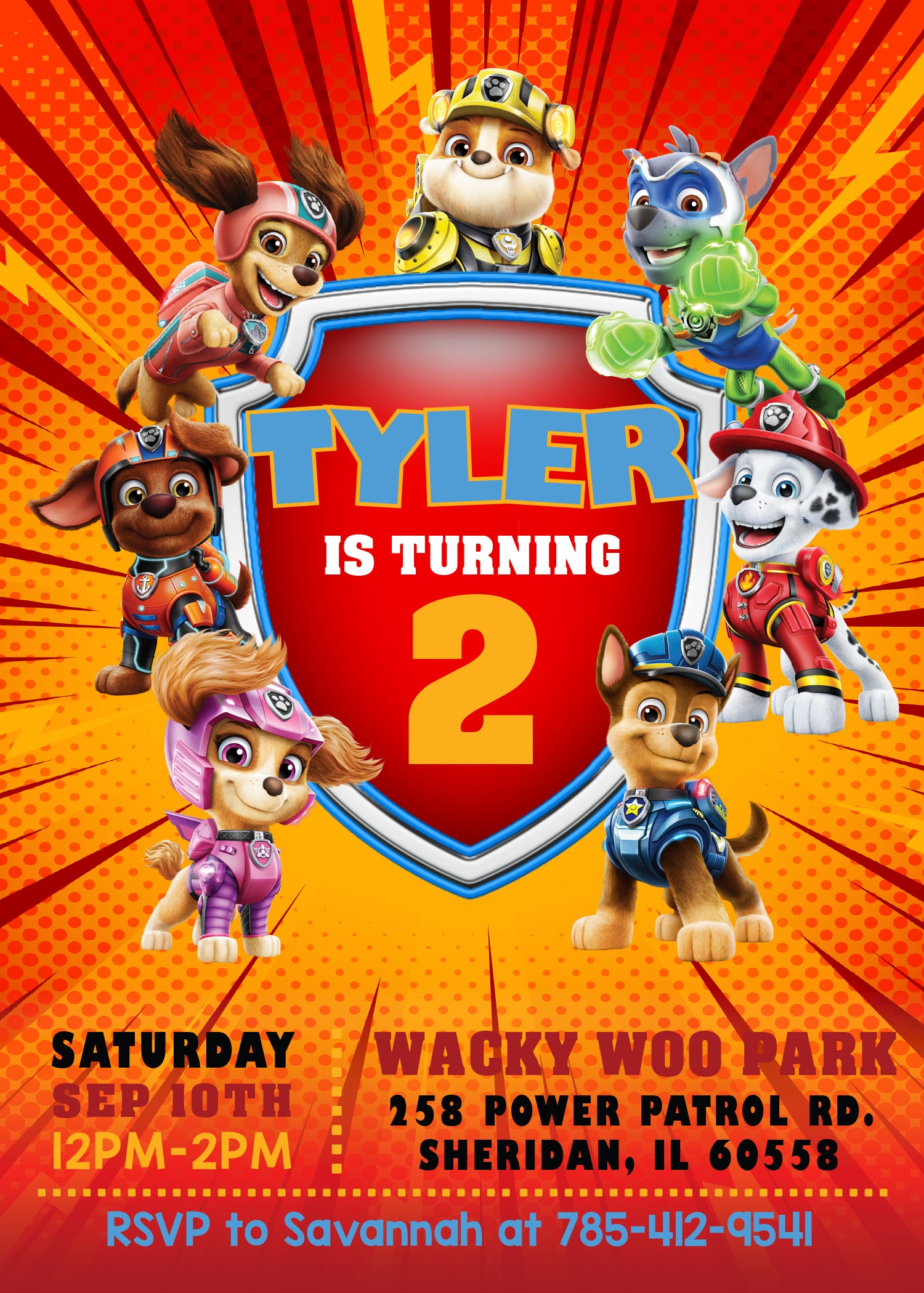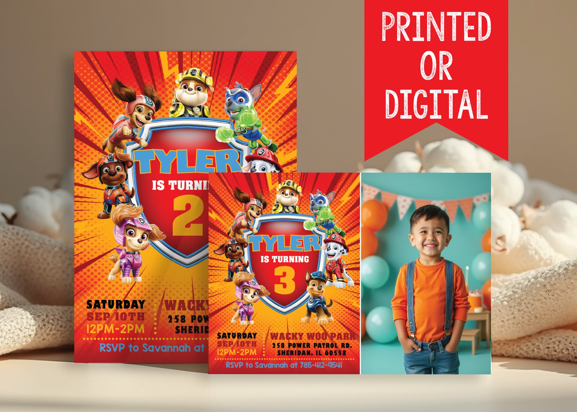 PAW PATROL Orange Mighty Pups Birthday Party Invitation with or without Photo - Printed or Digital File!
