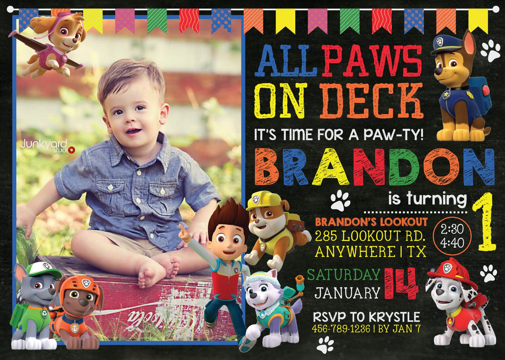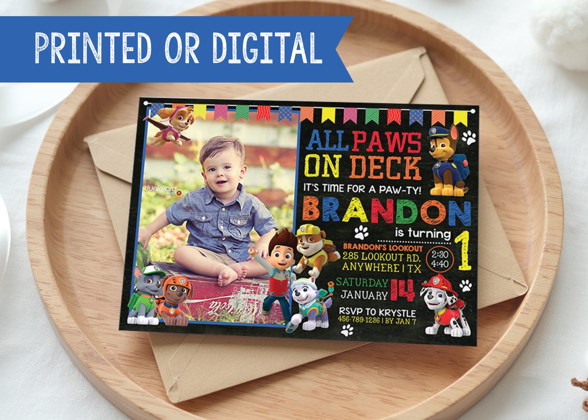 Custom PAW PATROL Digital or Printed Chalkboard Birthday Party Invitation with Photo!