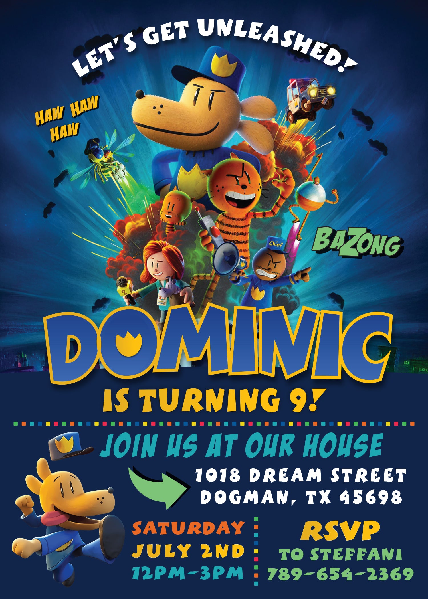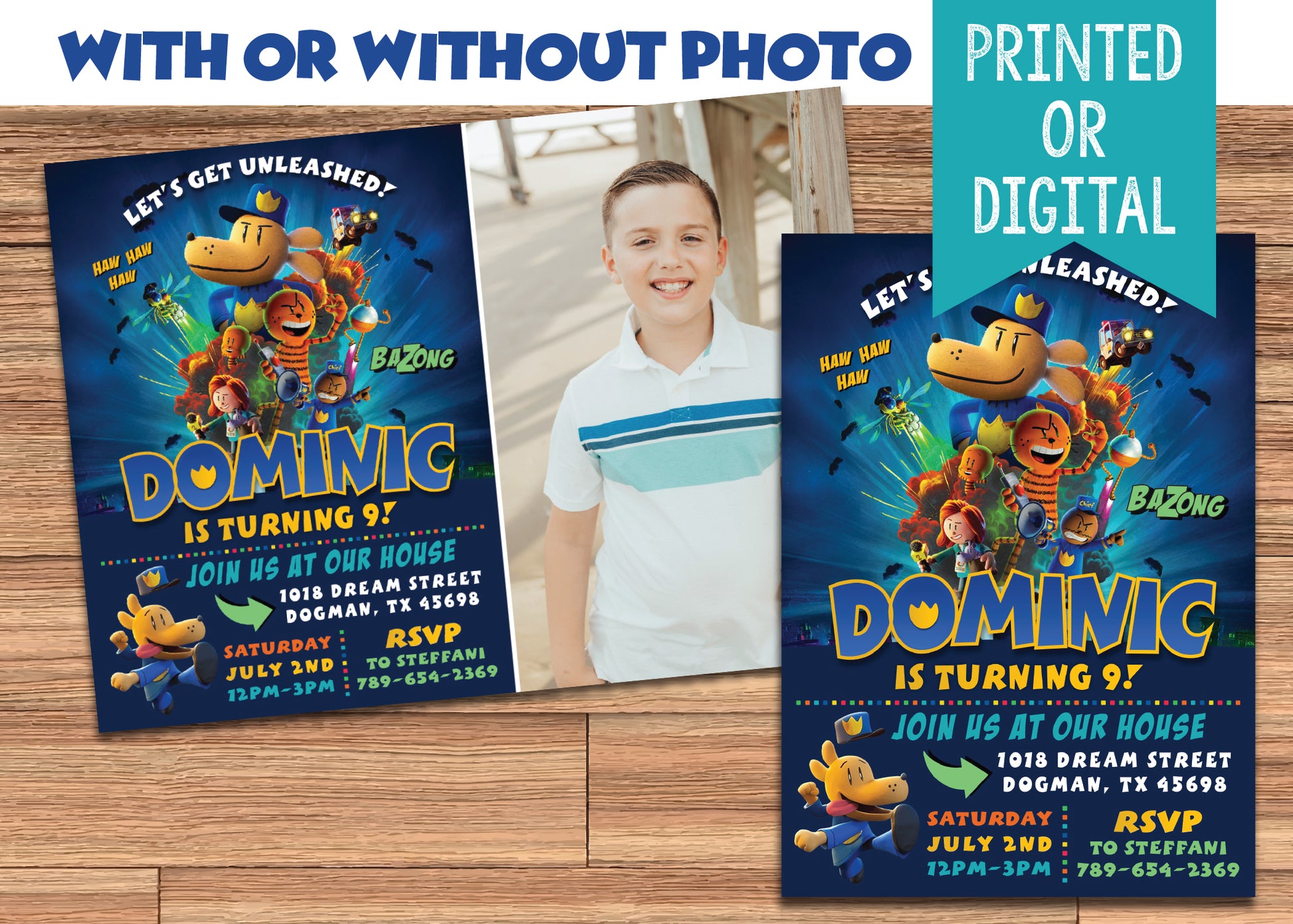 DOGMAN Birthday Party Invitation with or without Photo - Printed or Digital File!
