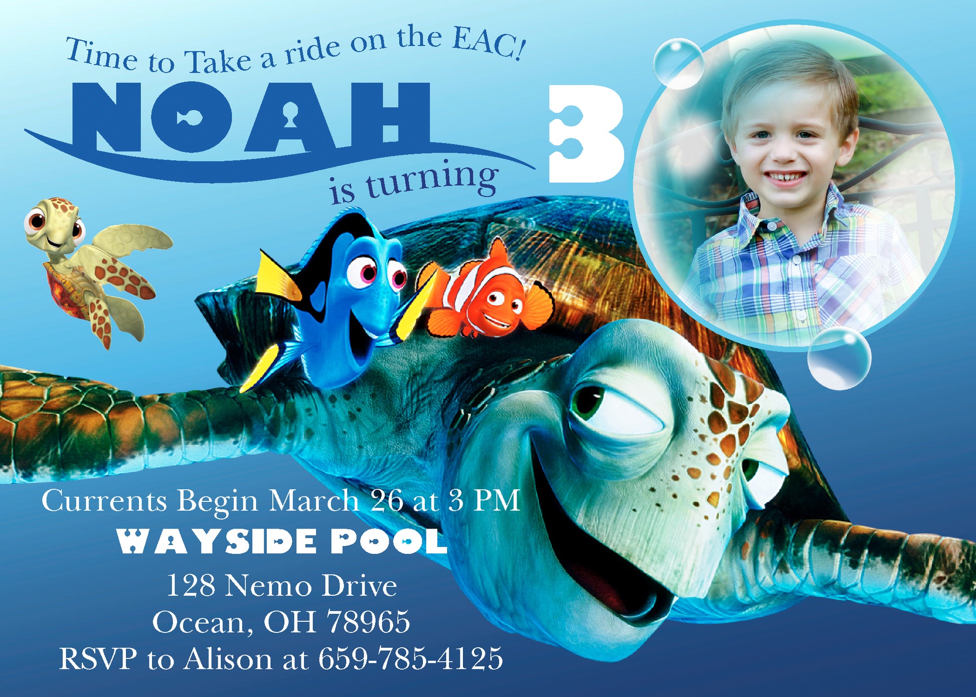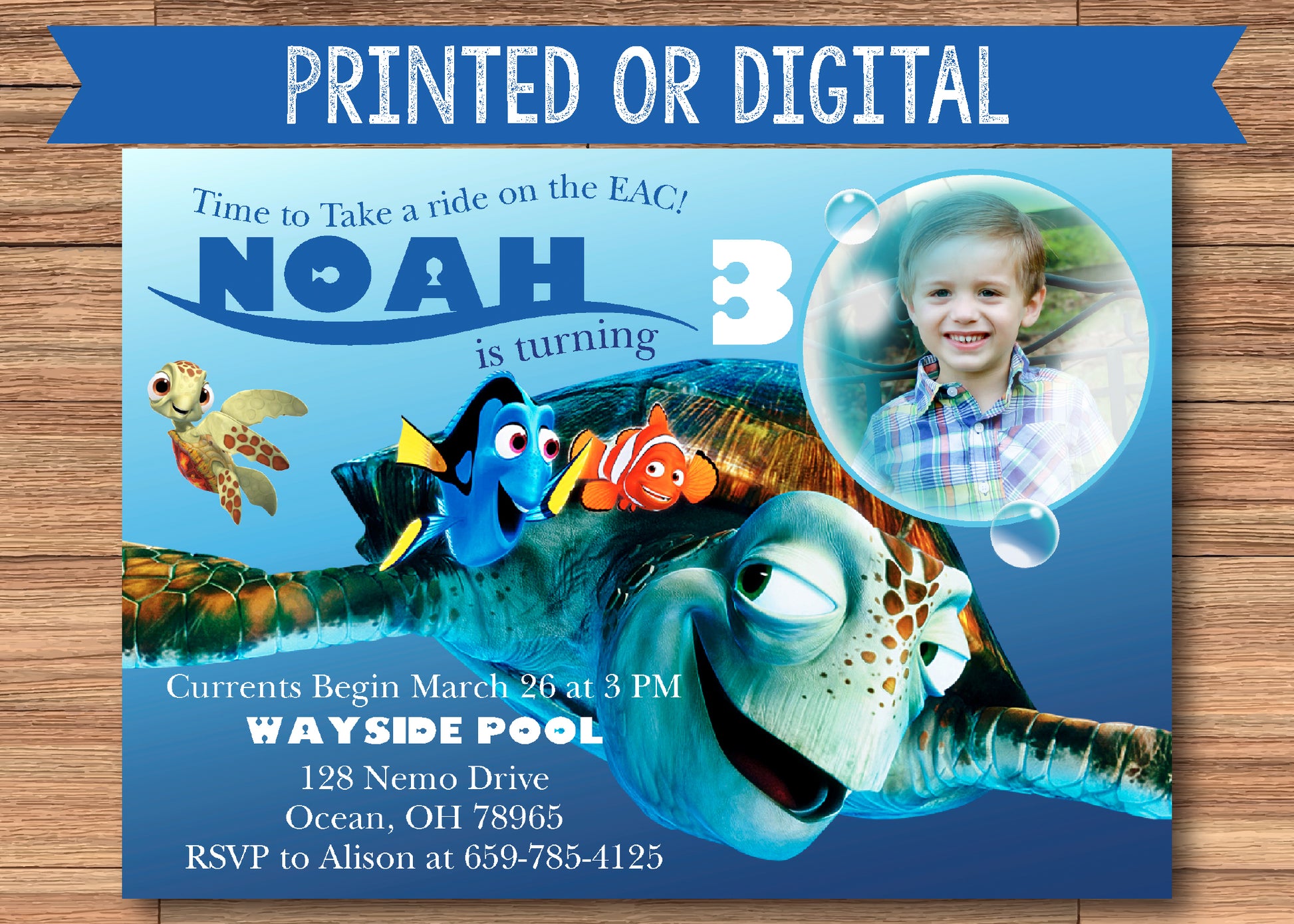 Finding Nemo Birthday Party Invitation with Photo! Nemo, Dory, Squirt, Crush! Printed or Digital!