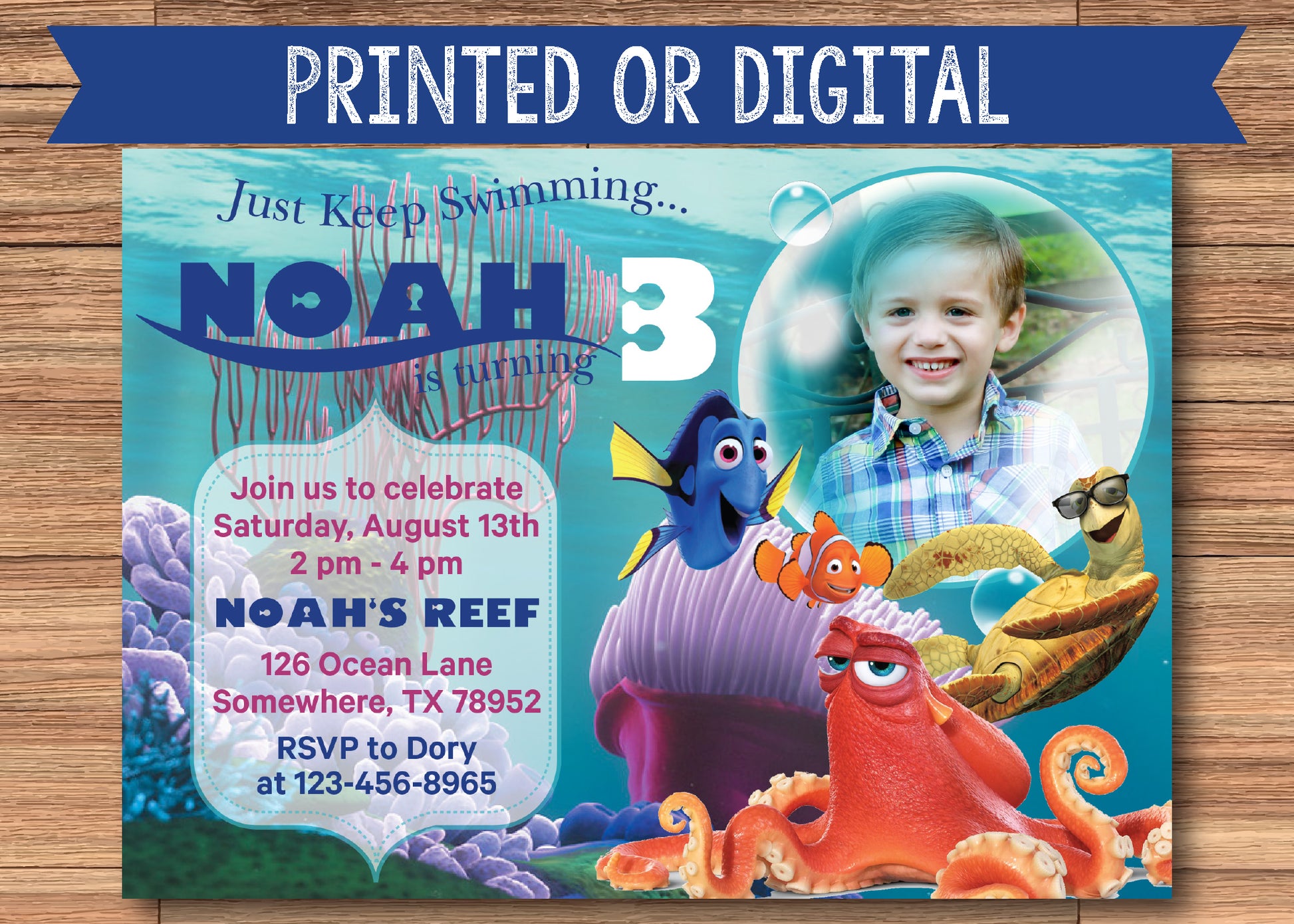 Finding Nemo Printed or Digital Invitation with Photo! Nemo, Dory, Squirt, Crush!