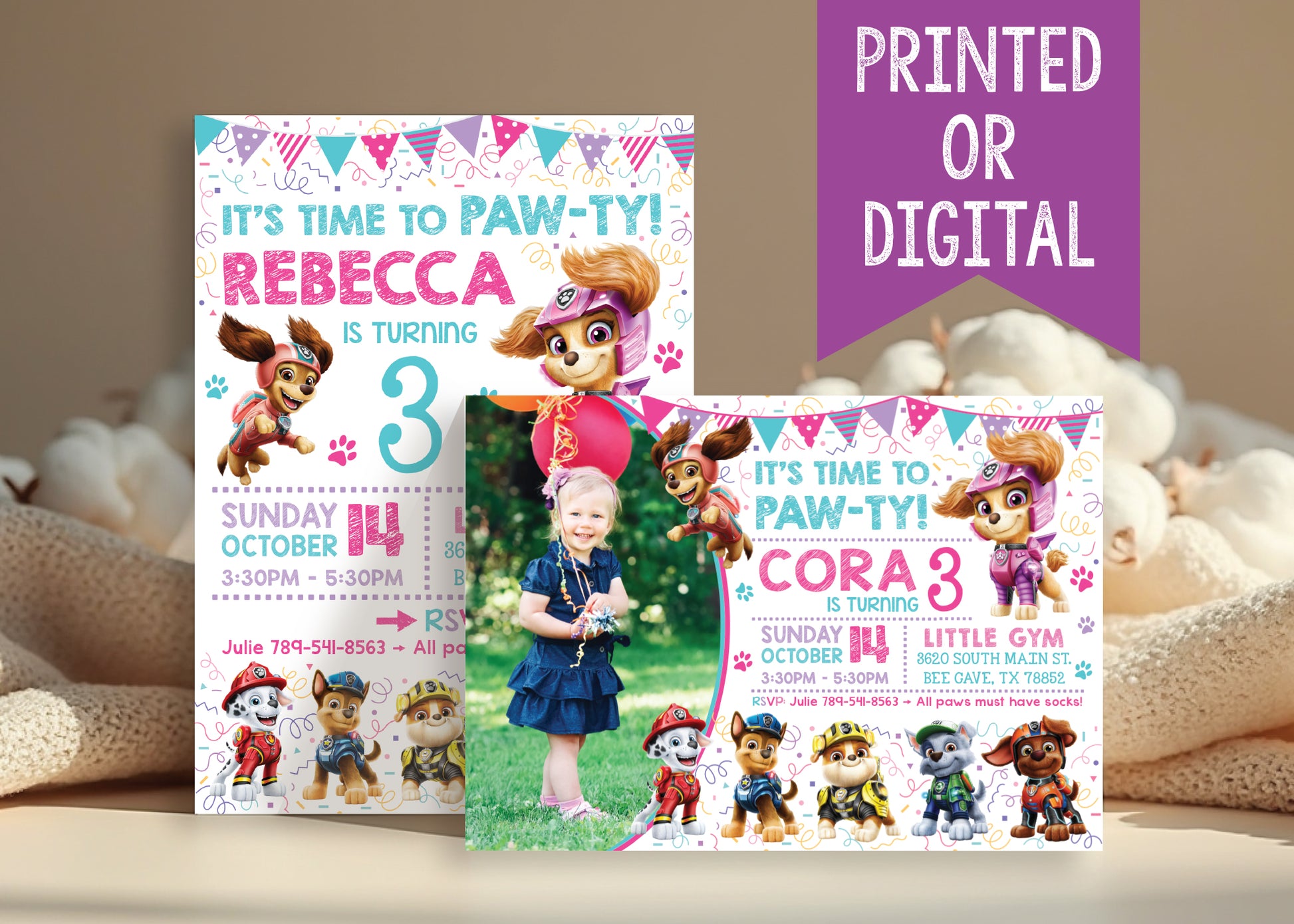 Girl PAW PATROL Mighty Pups Birthday Party Invitation with or without Photo - Printed or Digital!