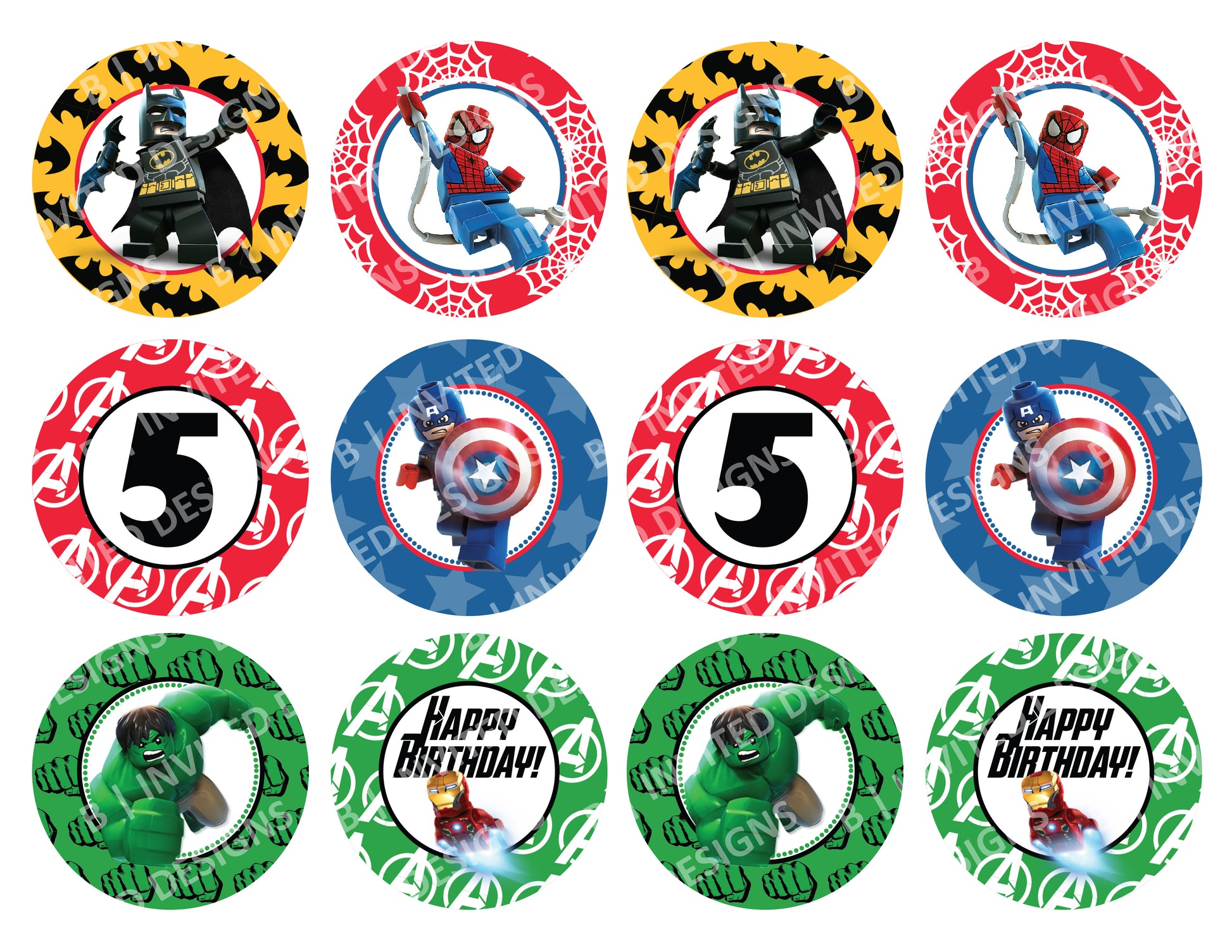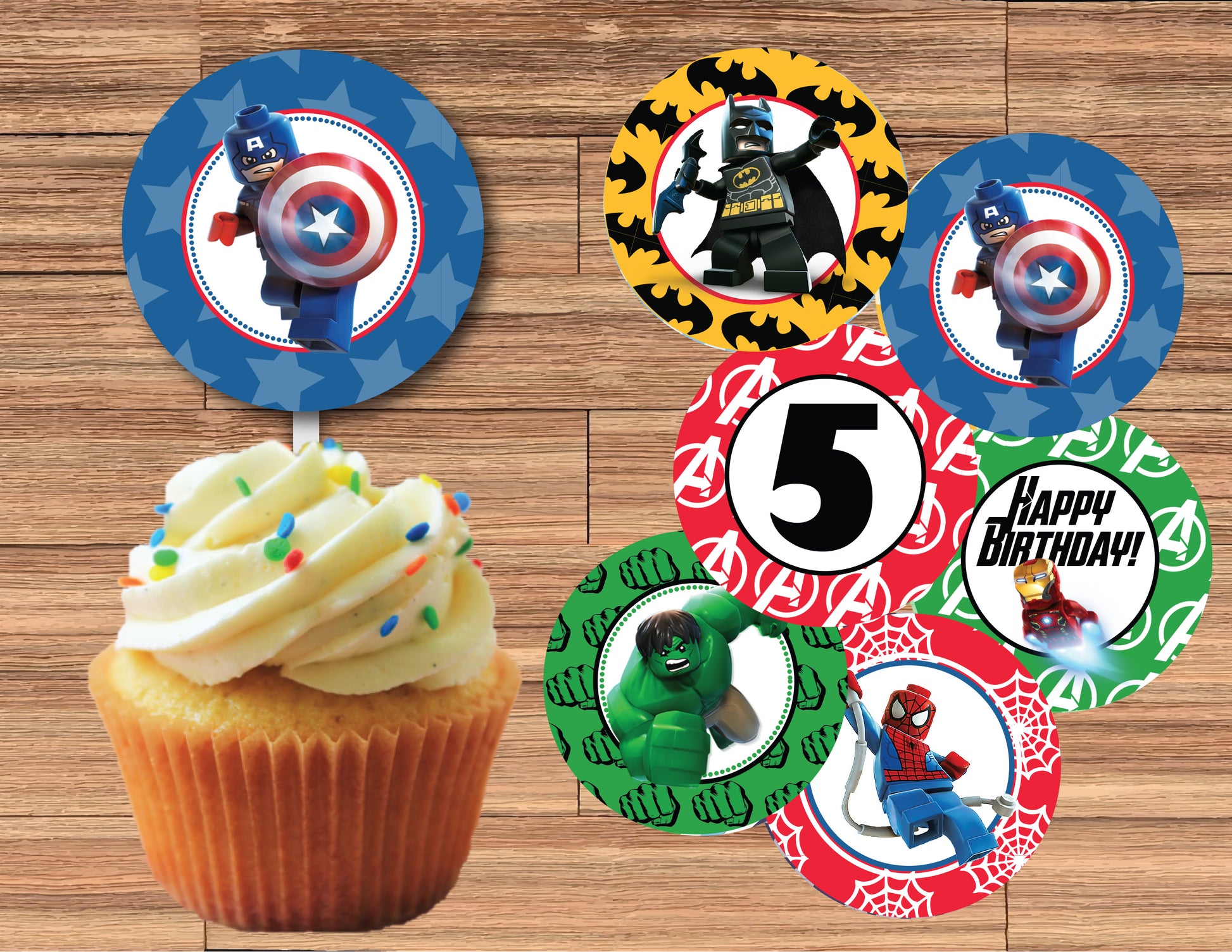 LEGO AVENGERS Cupcake Toppers! Hulk, Iron Man, Captain America, Spiderman! 2 Inch or 2.5 Inch! Digital OR Printed & Fully Assembled!