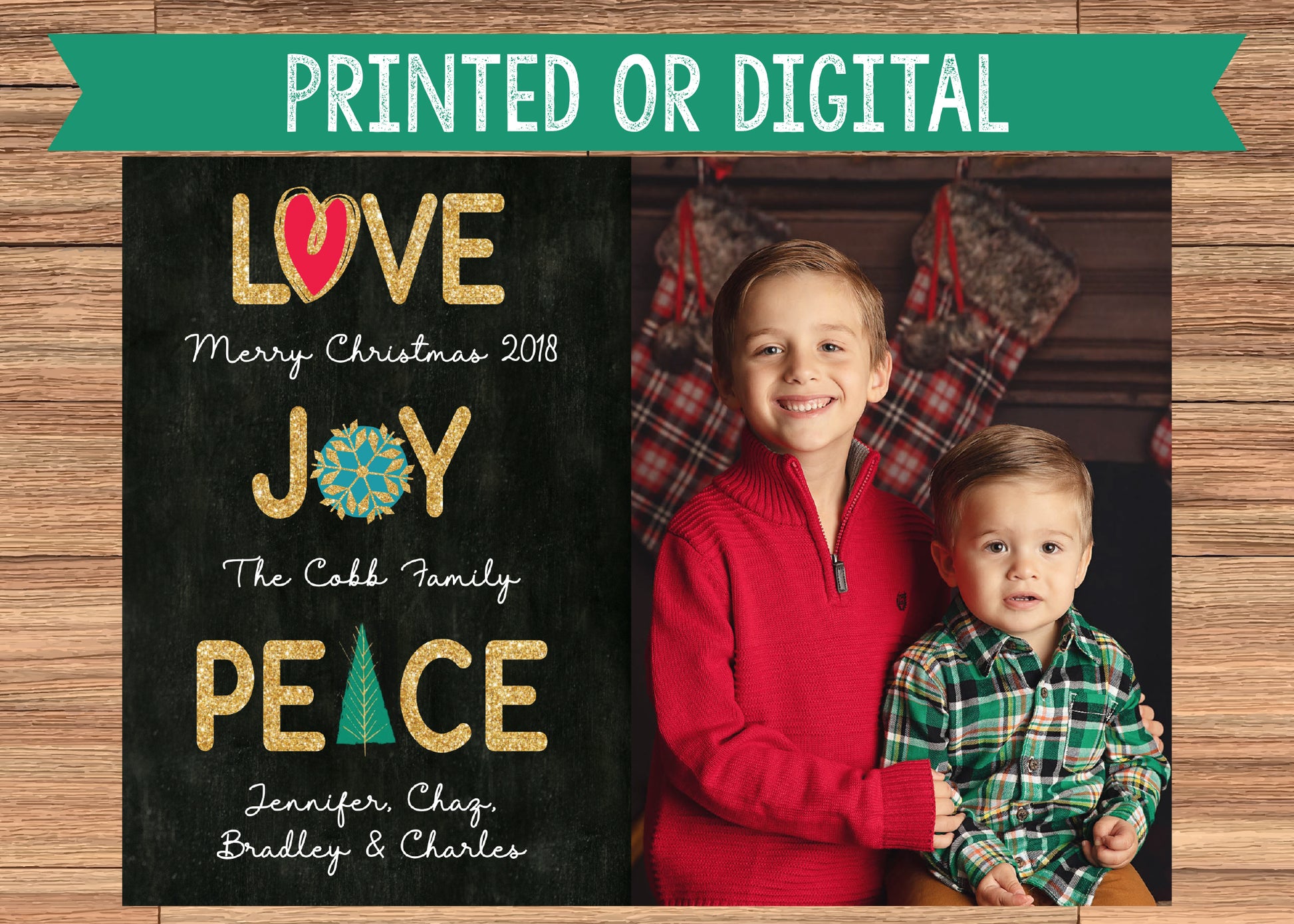 Love, Joy, and Peace Holiday Christmas Card Digital or Printed with Photo!